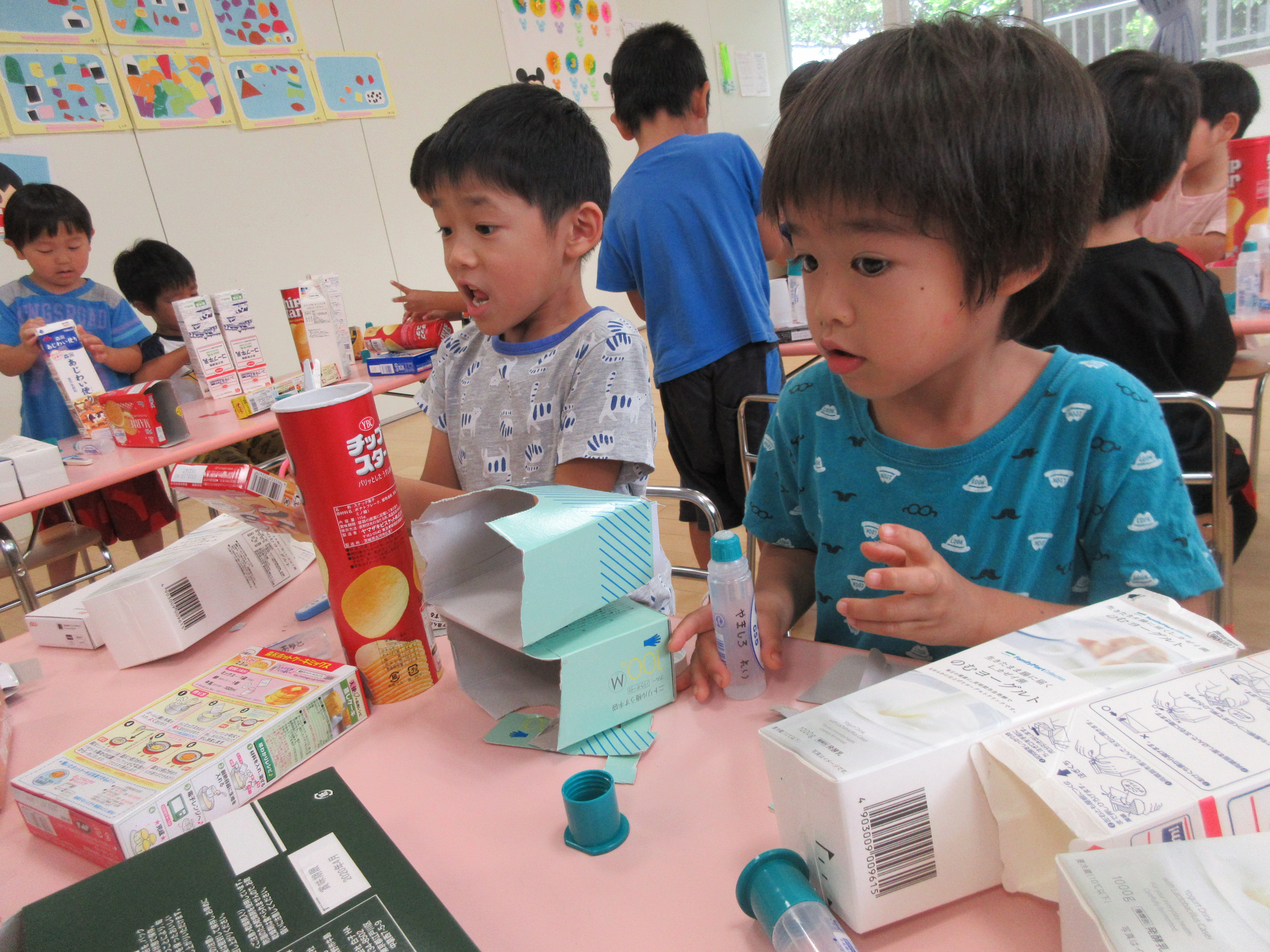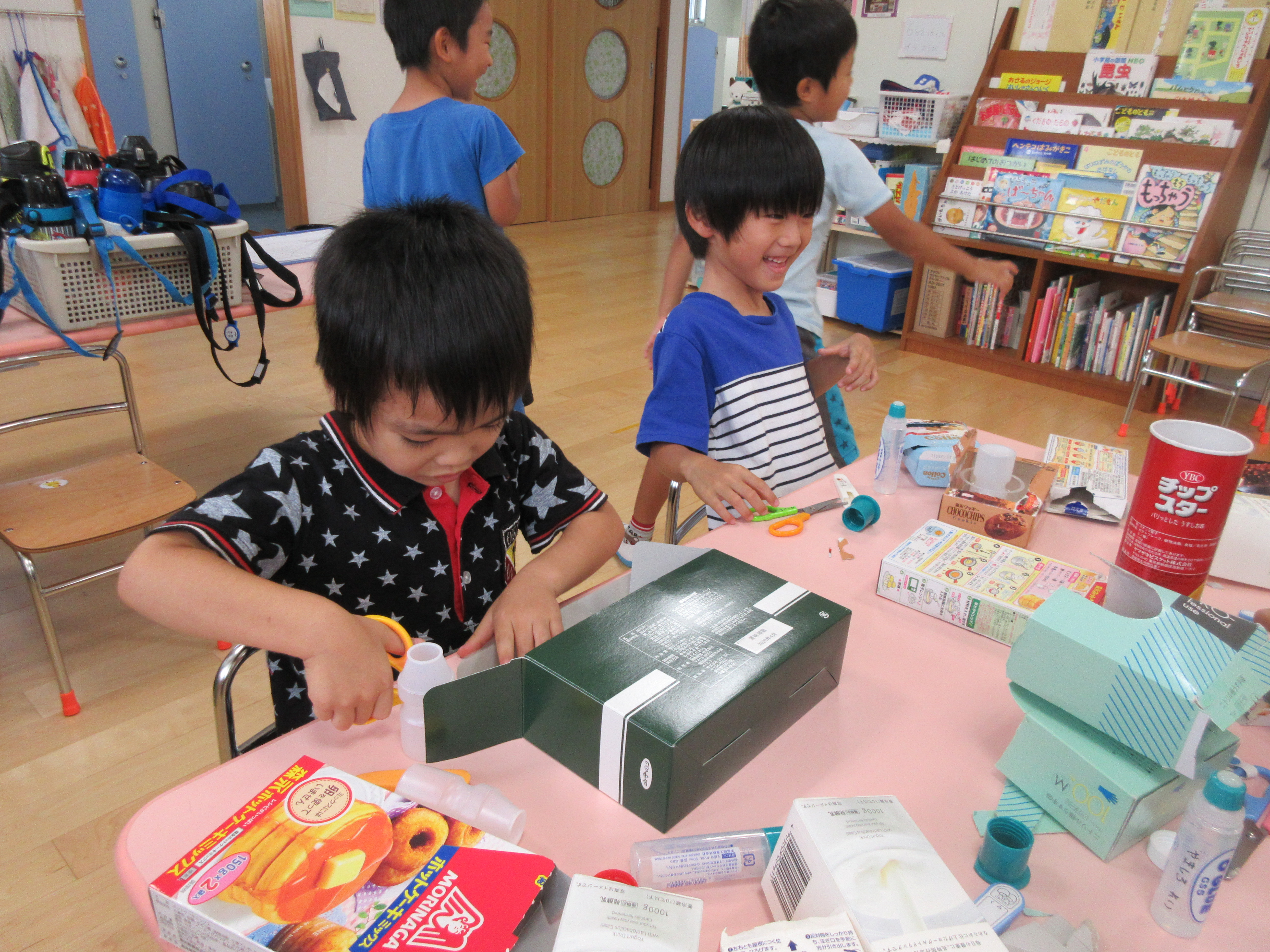 はさみやのり、テープを使って自分の作りたいものをイメージしながら作る子どもたち♬