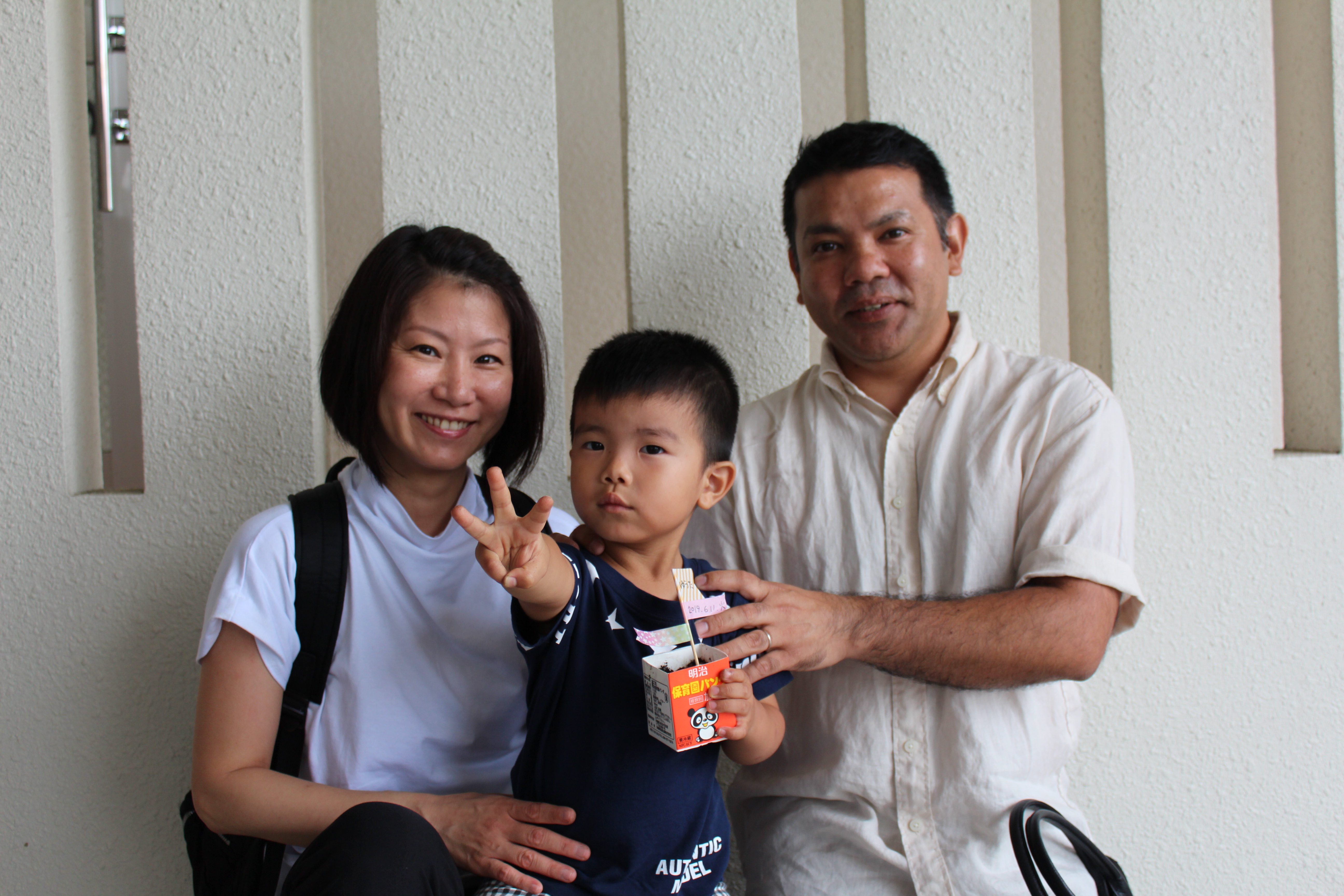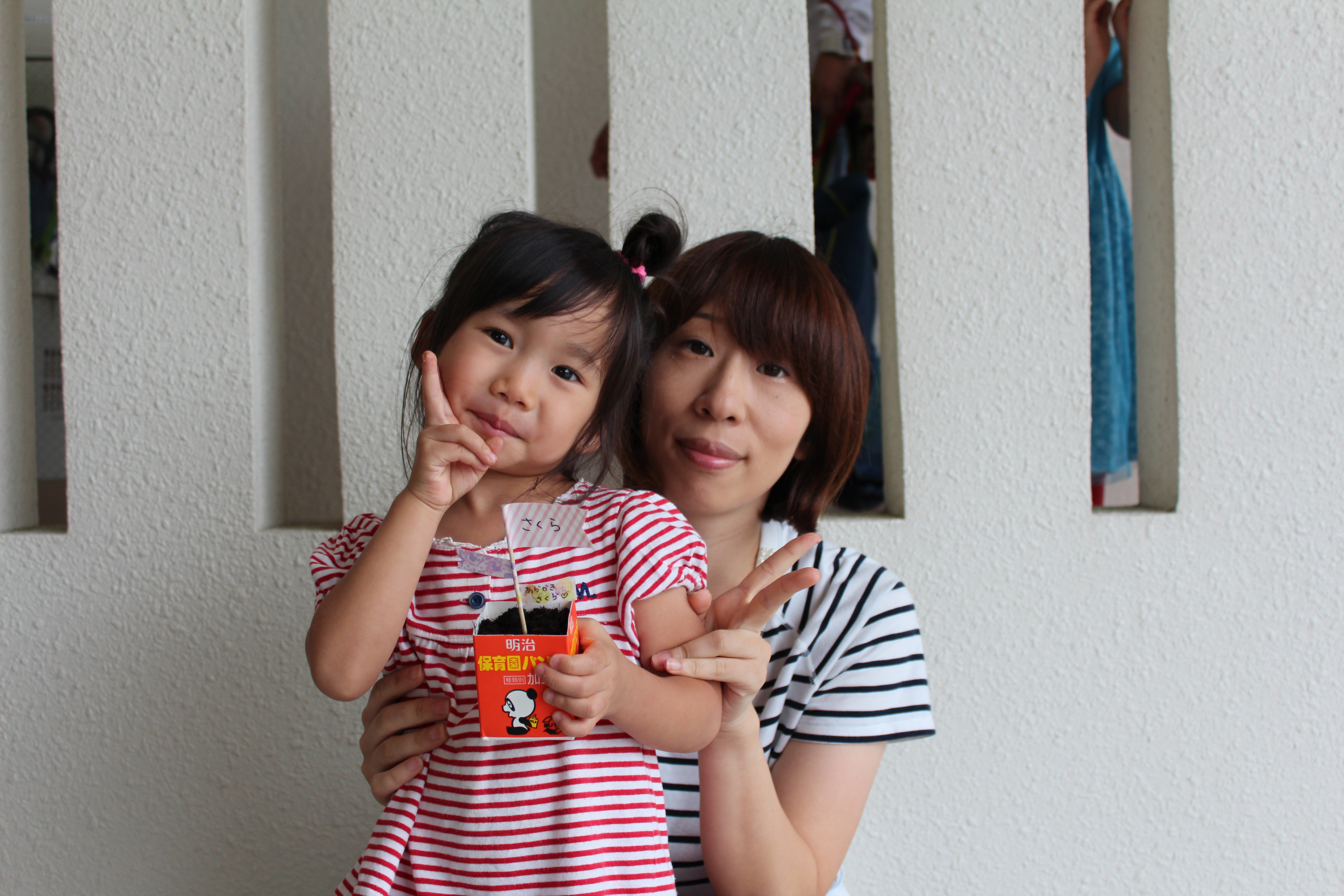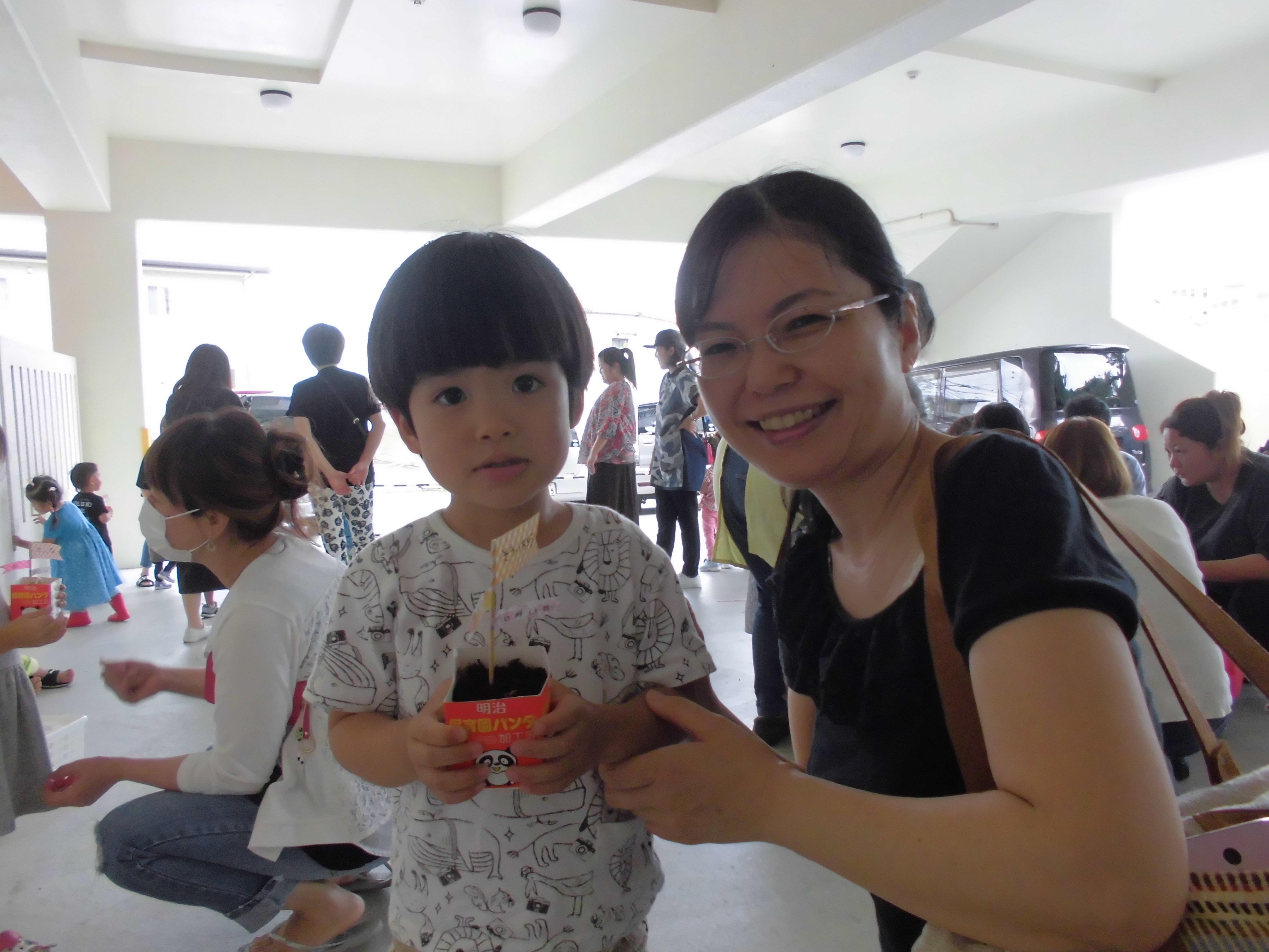 親子でネギを植えた記念に、写真を撮りました(^〇^)ネギの成長が楽しみです!ぱんだぐみのみんなで、交代で水かけを頑張りたいと思います♪ネギが成長したら、持ち帰る日をお楽しみに~♪