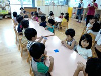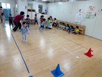 ぱんだ組では、リレーのバトン受け渡し練習をしています。